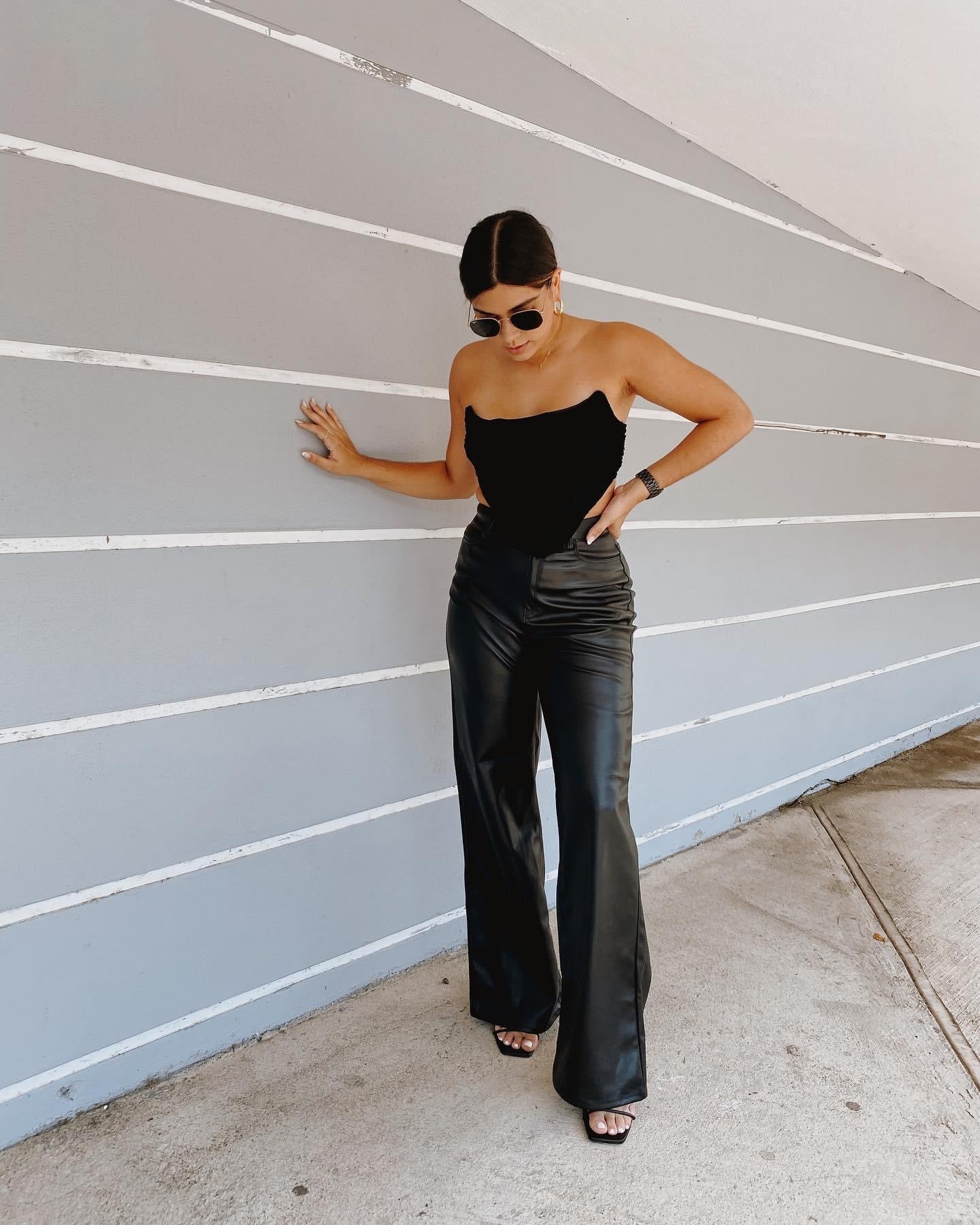 BLACK WIDE LEG LEATHER PANT. High waisted. Vibrant.