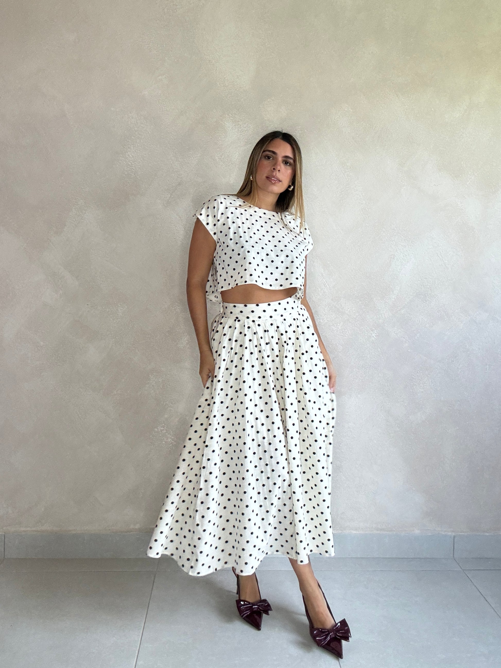 Polka dots long skirt set.