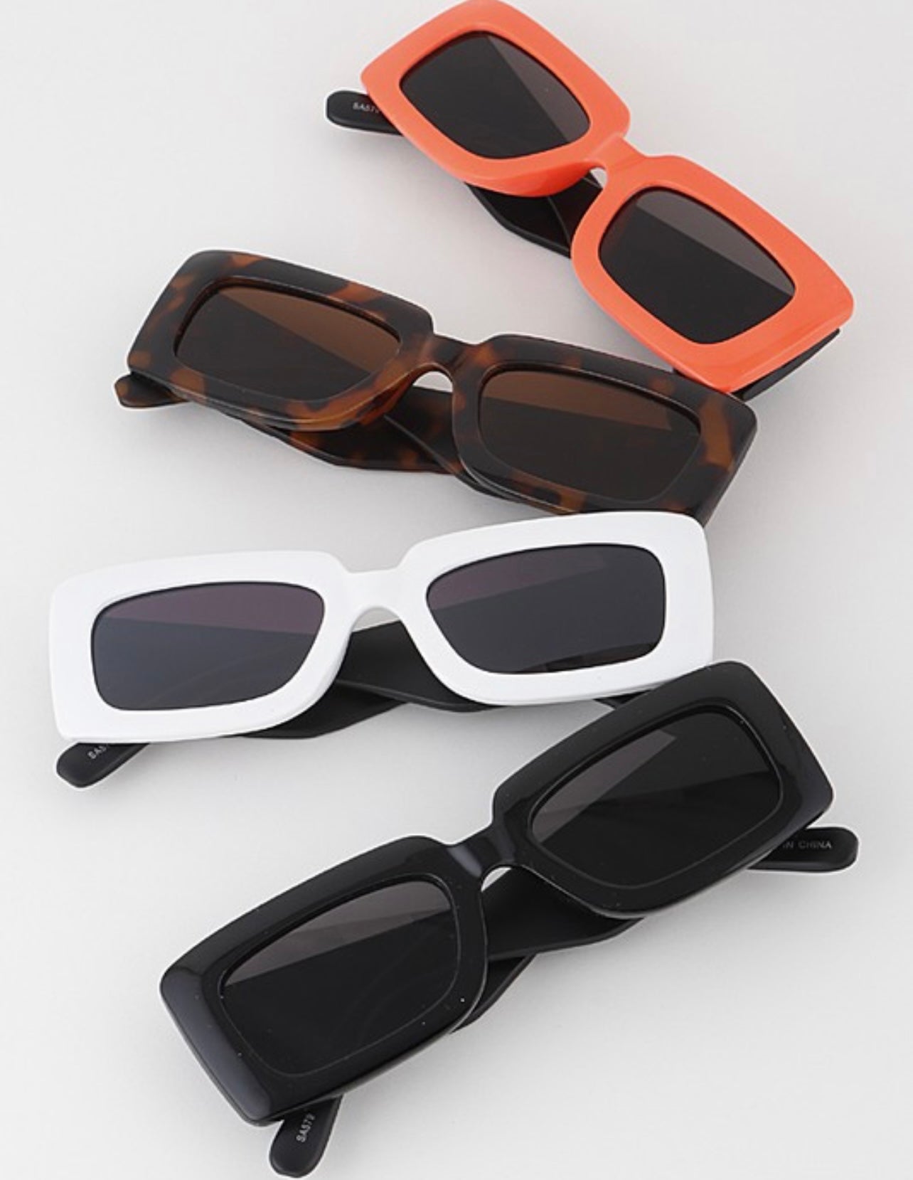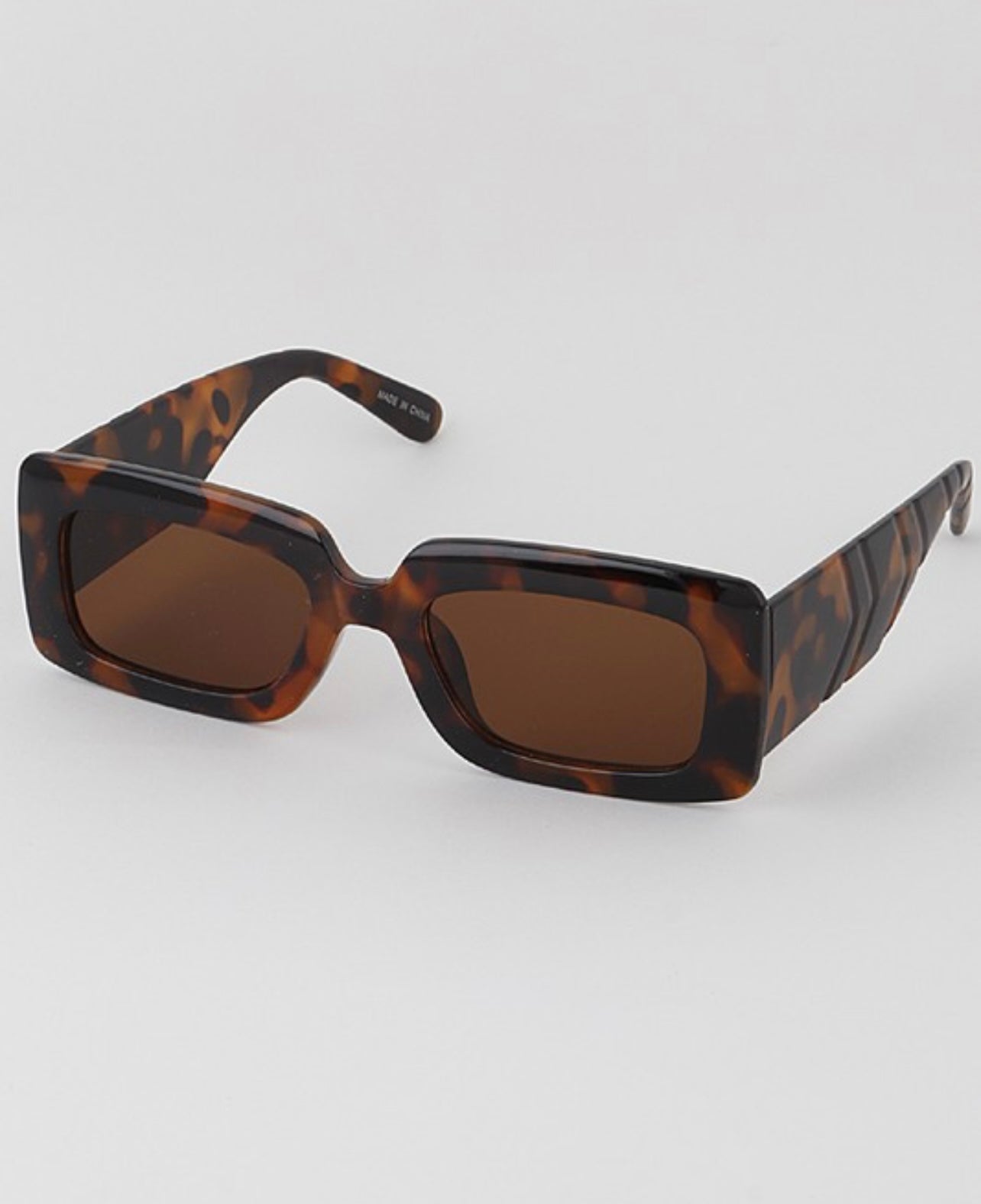 PLASTIC TEMPLE ARROW PATTER WIDE RECTANGULAR SUNGLASSES.